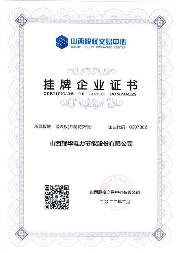 山西耀華電力節(jié)能股份有限公司是國內(nèi)第一家提出谷期電集中儲能蓄能的高新技術(shù)企業(yè),其主營業(yè)務(wù):電力市場購售電交易運(yùn)營、電力設(shè)施安裝檢測運(yùn)維、 低谷電采暖設(shè)備的研發(fā)、生產(chǎn)、安裝、銷售及運(yùn)行服務(wù)于一體。公司成立于1996年,落座于山西省太原市,現(xiàn)有股權(quán)代碼在晉興板上市的專精特新企業(yè),中國建設(shè)科技自主創(chuàng)新優(yōu)勢企業(yè),山西省節(jié)能協(xié)會理事單位,擁有自主知識產(chǎn)權(quán),獲得國家多項(xiàng)專利,參編了電采暖國家標(biāo)準(zhǔn)(JC/T60008-2021)和主編了山西省地方標(biāo)準(zhǔn)(DBJ04/T291-2012)。擁有國家發(fā)明專利11項(xiàng),軟件著作權(quán)6項(xiàng)。其中“大數(shù)據(jù)遠(yuǎn)程集中監(jiān)控運(yùn)維服務(wù)平臺”早在2019年就在河北、天津、山西等多個(gè)煤改電地區(qū)投入試用,節(jié)能效果非常顯著,運(yùn)維方便快捷,用戶滿意。